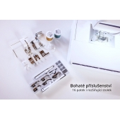 V základním vybavení má rozšiřující stolek, kolenní páku a celkem 16 patek na šití oděvů, patchworku i bytových dekorací. S kolenní pákou a automatickým odstřihem nitě se vám budou skvěle šít kabelky.