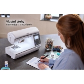 K dispozici máte 232 druhů stehů - užitkové, ozdobné, pružné, overlockové a 5 druhů písmenek abecedy. Oproti nižšímu modelu umí malá i velká písmenka. Stehy můžete kombinovat, volit jeden steh nebo nekonečnou řadu, motiv zrcadlit, uložit si kombinaci stehů nebo vytvořené jméno do paměti stroje a bonusem je funkce My Custom Stitch™, která vám umožní nakreslit a vytvořit si přímo ve stroji váš vlastní steh, který samozřejmě můžete zase uložit k dalšímu použití.