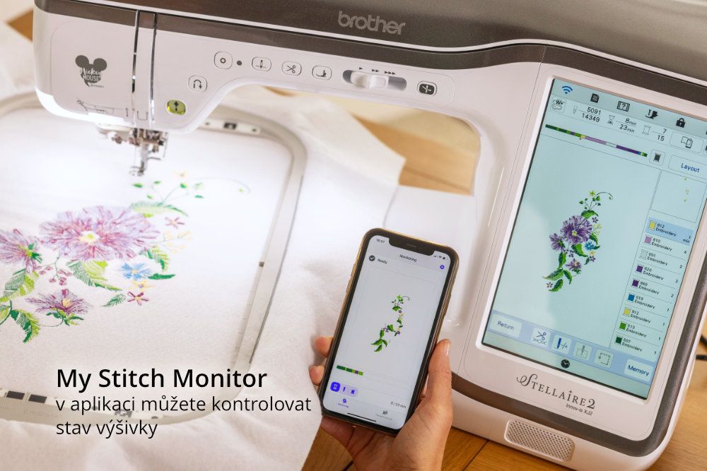Vyšívací stroj Brother CX1e je vždy připojen. Po Wi-fi využijete bezdrátový přenos z počítače, použití aplikace Artspira nebo My Stitch Monitor