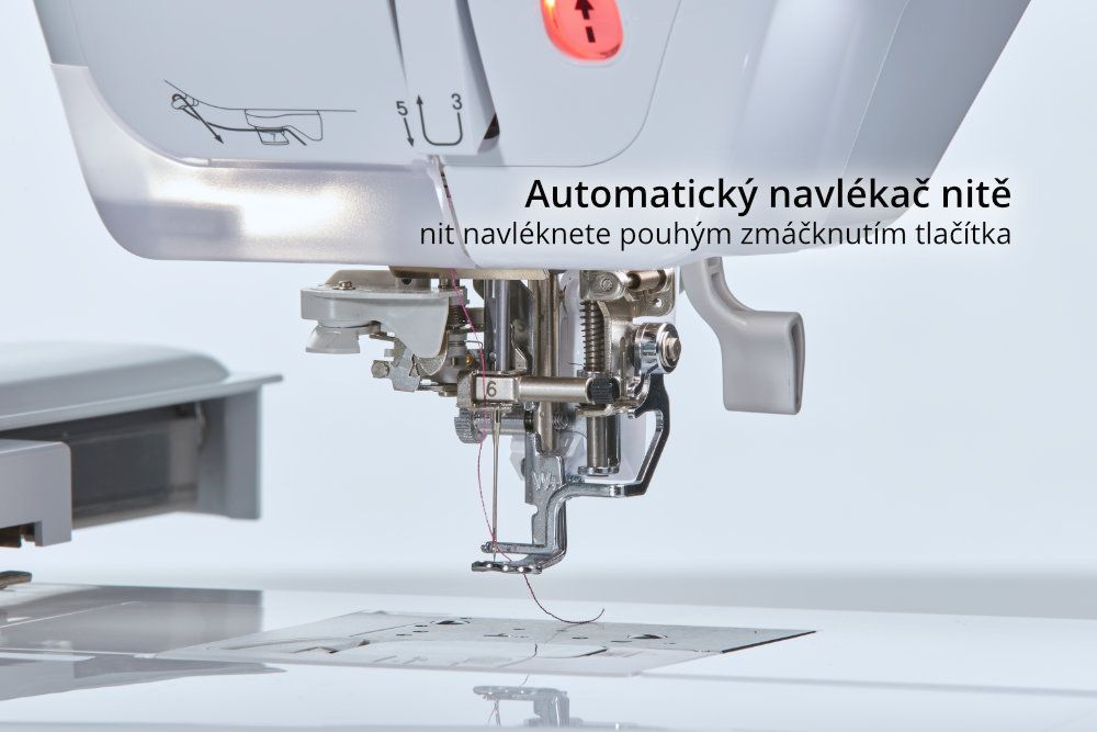 Vyšívací stroje Brother jsou proslulé svým naprosto jednoduchým a komfortním navlékáním horní nitě. U tohoto stroje ale šli ještě dál. Nit navléknete pouhým stisknutím tlačítka! Stačí nit pouze navést k jehle a do ouška jehly navleče stroj nit už sám.